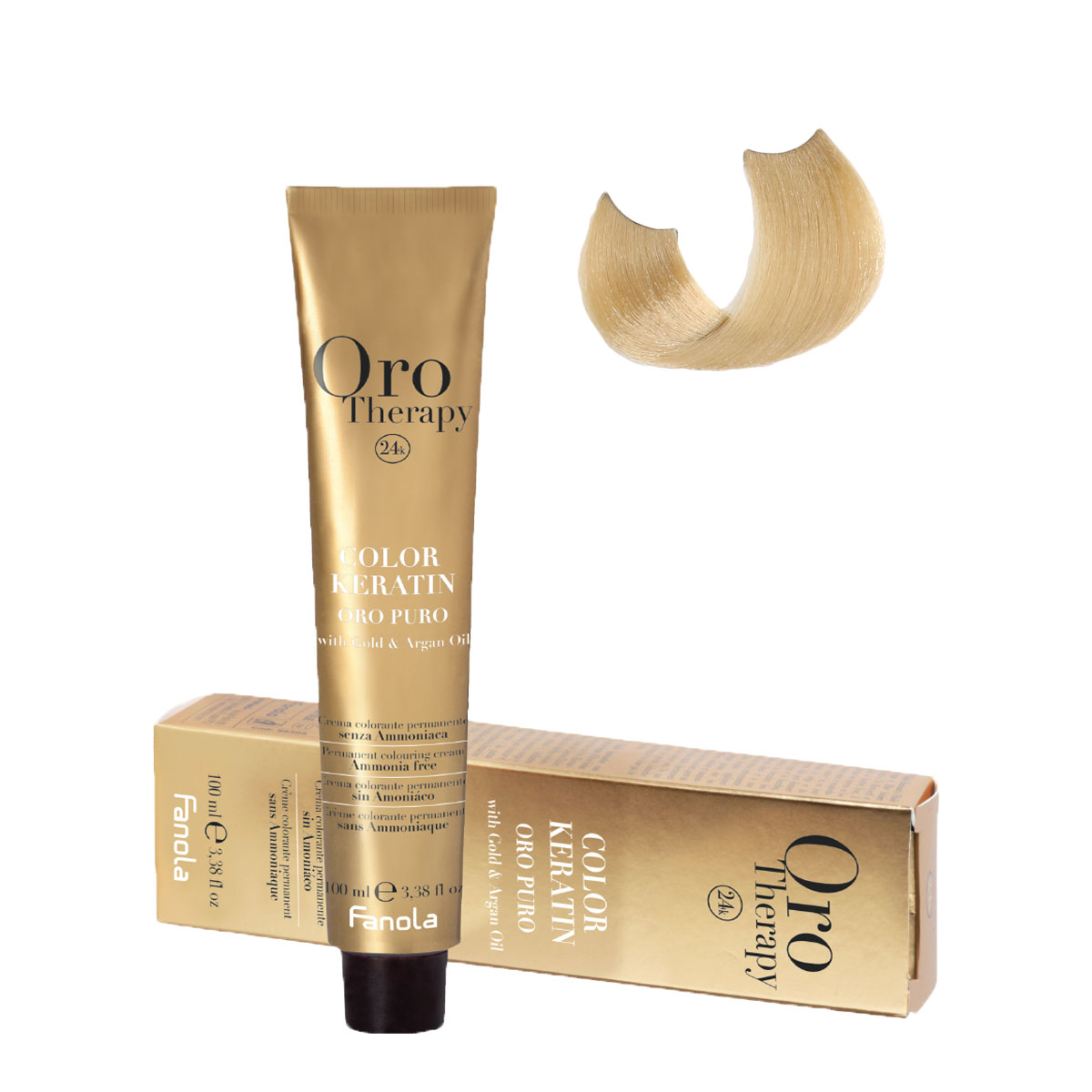 Безаммиачный краситель Fanola Orotherapy c кератином, маслом арганы и активными микрочастицами золота придает волосам стойкий оттенок, ухаживает за ними, уплотняя по всей длине.